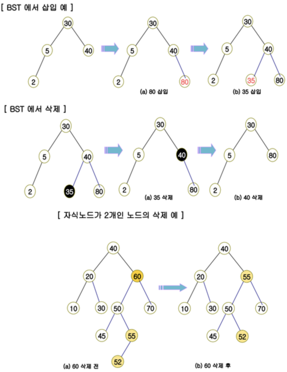 하지만 BST에서는 이 연산들을 구체화 할 수 있고 또한 key값을 기준으로 정렬이 가능하다.