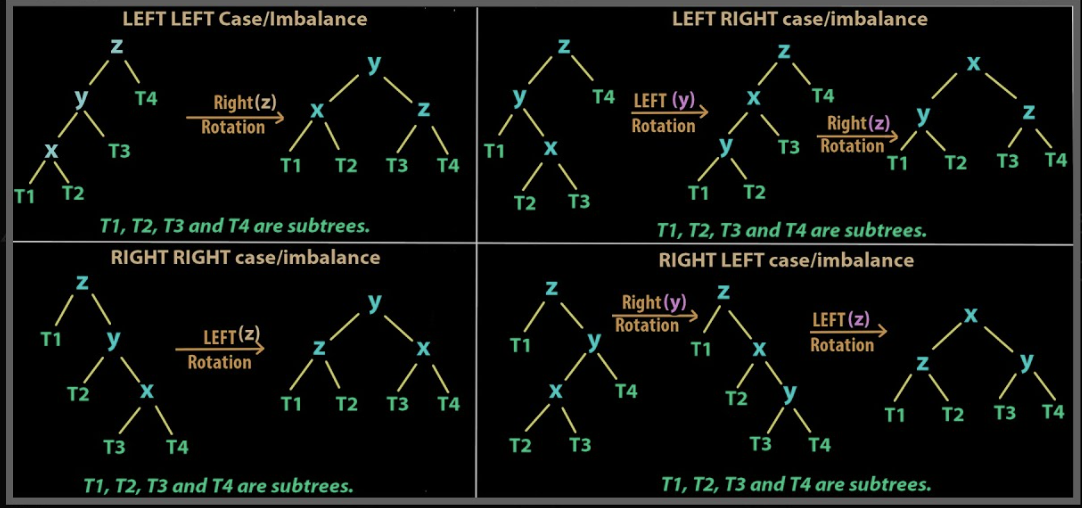 이런 균형이 깨진 트리를 다시 균형있게 만드는 방법으로 다음 4가지 방법이 있다.