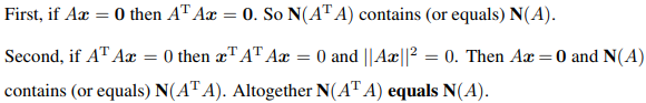 명제 3. : A와 ATA에 모두 n개의 열이 있다. 두 행렬은 모두 영공간이 같다. 따라서 두 행렬에서 n - r의 값은 같고 rank는 모두 r이 된다. - 또한 rank(AT) ≤ rank(ATA) = rank(A)이다.