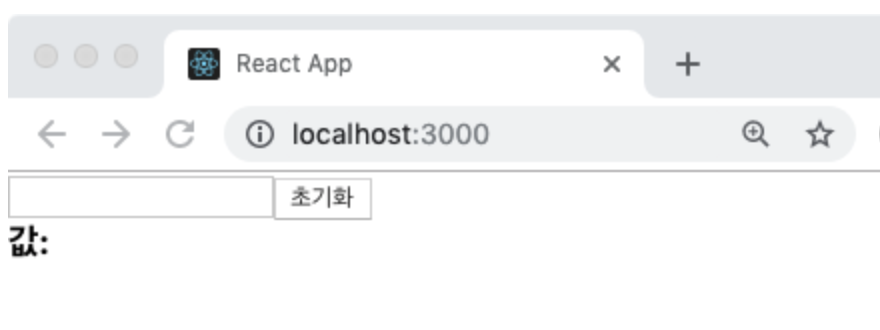 InputSample.js import React from 'react'; function InputSample() { return ( <div> <input /> <button>์ด๊ธฐํ</button> <div> <b>๊ฐ: </b> </div> </div> ); } export default InputSample;โApp.js import React from 'react'; import InputSample from './InputSample'; function App() { return ( <InputSample /> ); } export default App;โ