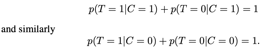 p(T=1|C=1)~p(T=0|C=0)๊น์ง์ ํ๋ฅ ์ ํด๋น ์ฌ๋์ด ์์ ๊ฑธ๋ ธ์ ๋ ํ ์คํธ ๊ฒฐ๊ณผ์ ํ๋ฅ ๋ถํฌ๋ฅผ ์ ๊ณตํ๋ค.