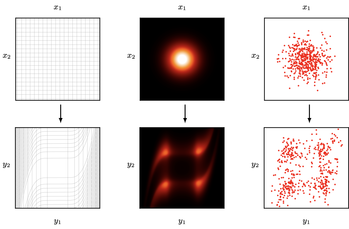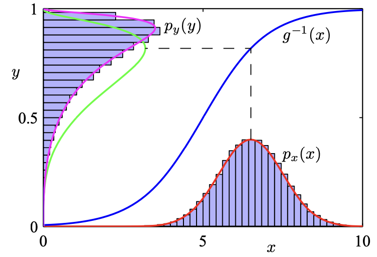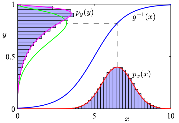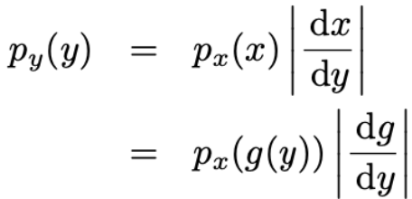 x, y๊ฐ ๋ค๋ณ๋๋ถํฌ์ผ ๋, ๋น์ ํ๋ณํ์ ์ ์ฉํ๋ ค๋ฉดJacobian Matrix๋ฅผ ์ฌ์ฉ (py(y) = px(x) |det J|).