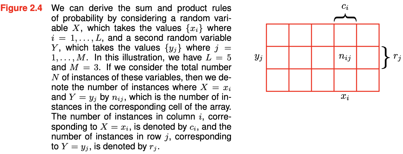 โ p(X = xi, Y = yj): X๊ฐ ๊ฐ xi๋ฅผ ์ทจํ๊ณ Y๊ฐ ๊ฐ yj๋ฅผ ์ทจํ ํ๋ฅ