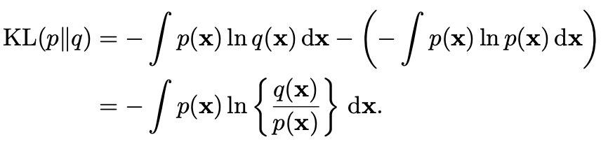 (์ฆ, ์ถ๊ฐ๋ก ์ ์กํด์ผํ ์ ๋ณด = ๋ ๋ถํฌ๊ฐ์ KL-Divergence)์ฝ๊ฒ ์ค๋ช ํ์๋ฉด, Cross Entropy - Entropy๊ฐ ๋ฐ๋ก KL Divergence์์ด๋ค.
