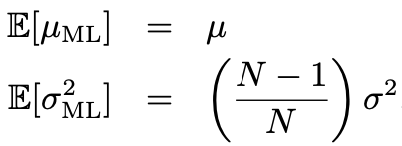 μML = μ์ ๋ถํธ ์ถ์ ๋ , σML2 ≠ σ2์ ๋ถํธ ์ถ์ ๋. (N-1 / N)