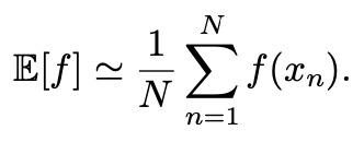 E[f] : ๋ค๋ฅธ x๊ฐ๋ค์ด ์๋์ ํ๋ฅ ์ ๋ฐ๋ผ "๊ฐ์ค"๋๋๋ฐ, ์ด๋ ๊ณง "ํ๋ฅ ๋ถํฌ p(x)ํ์์ ํจ์ f(x)์ ๊ฐ์คํ๊ท "์ ์๋ฏธ.