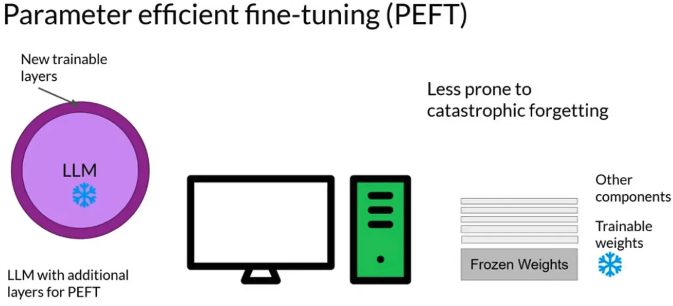 ์ฌ์ ํ์ต๋ LLM ๋ชจ๋ธ์์ ๋๋ค์์ ํ๋ผ๋ฏธํฐ๋ฅผ ๊ณ ์ ํด ์์์ ์ถ๊ฐ์ ์ธ ํ๋ผ๋ฏธํฐ๋ง ํ์ธํ๋ํ๋ ๊ฒ์ด ์ค์