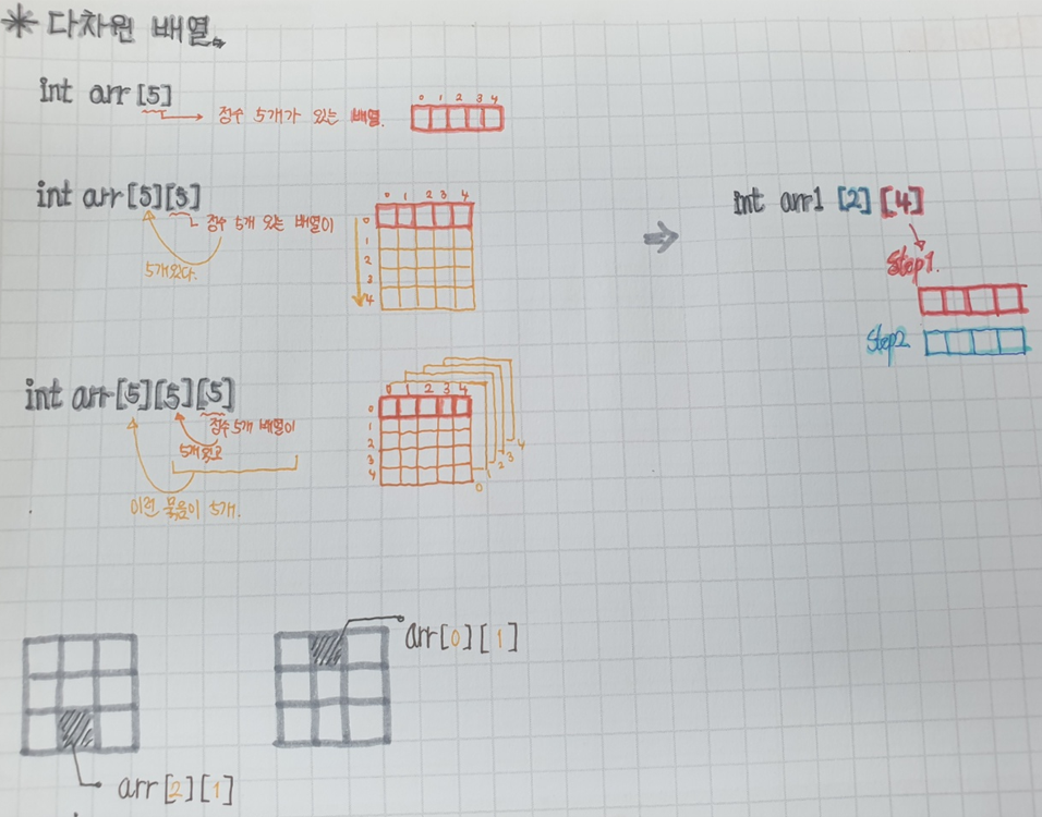 자료형 배열이름 [배열길이] 형태로 사용한다.