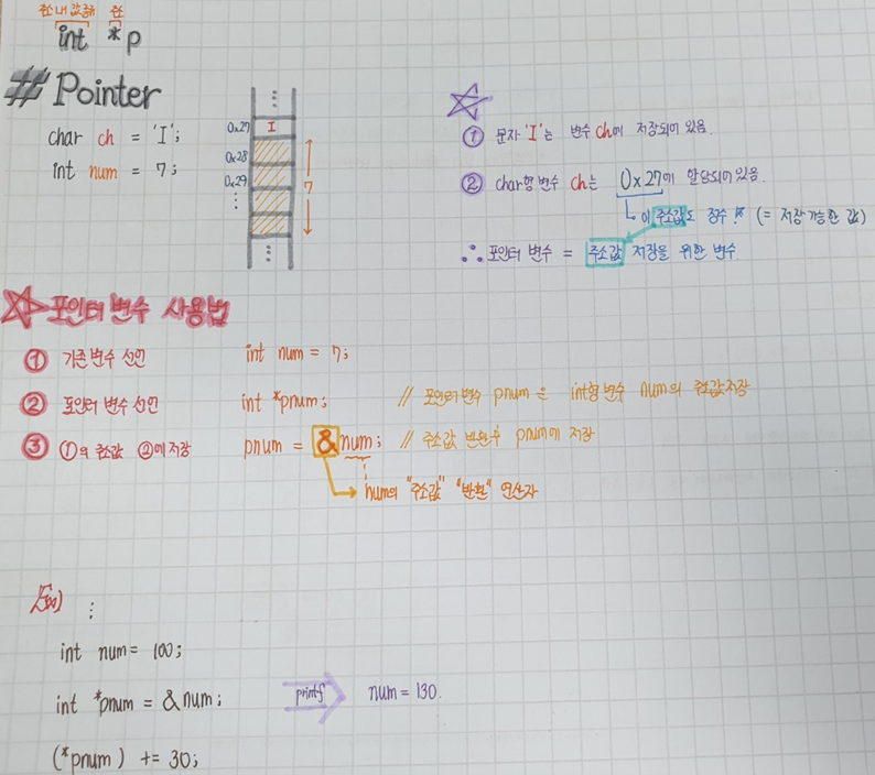 - * 연산자를 붙이면 주소를 따라가게 되며 &연산자는 주소를 꺼내는 연산자이다.