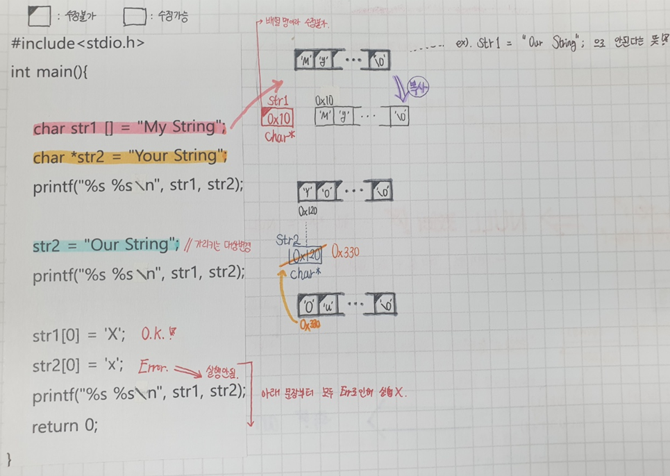 Q. 이때, 각각에 저장된 문자열 "My String"과 "Your String"을 바꿀 수 있을까?