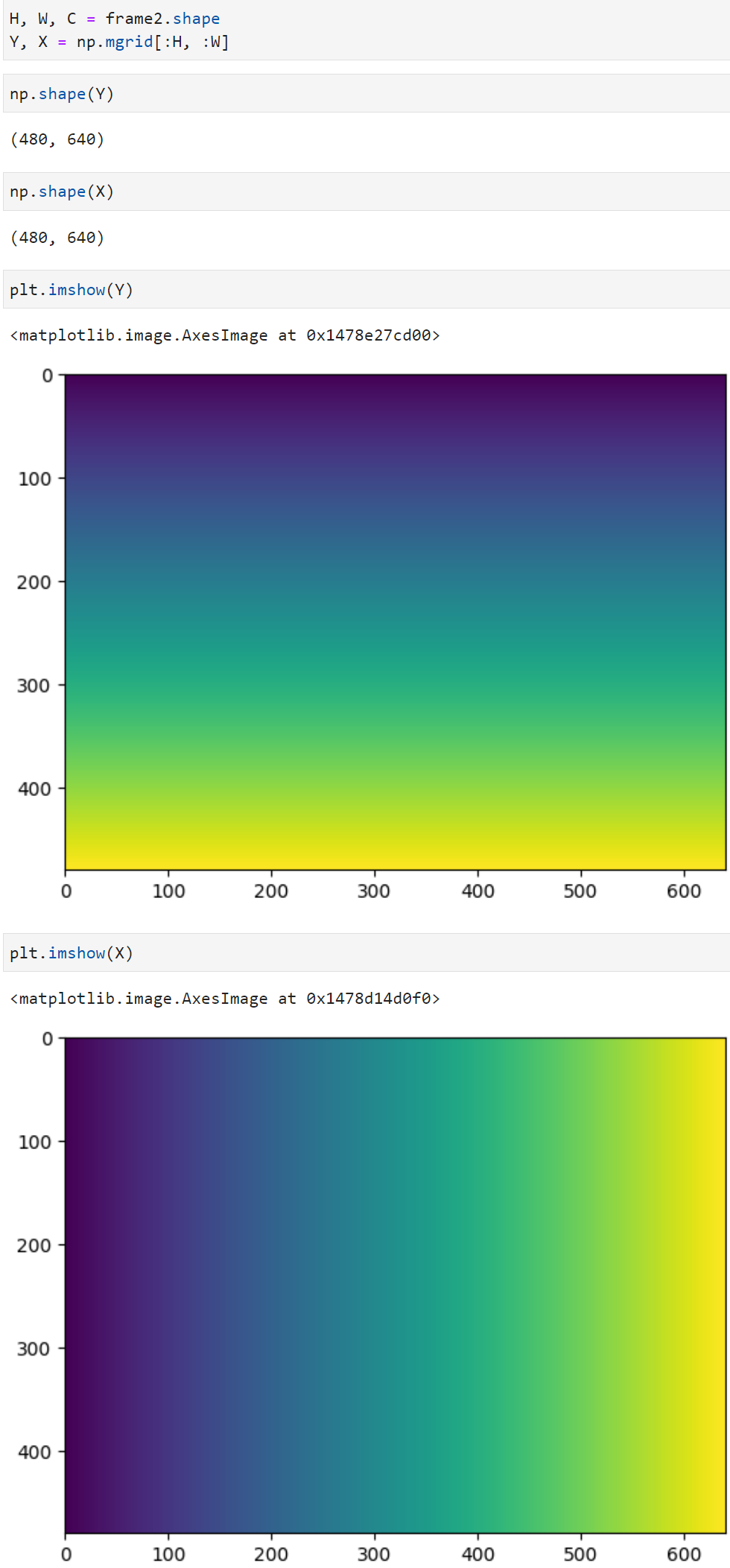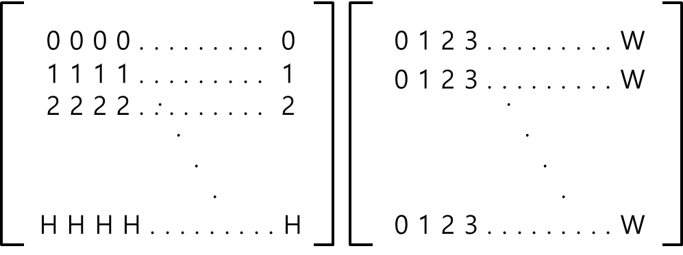 - np.mgrid[:H, :W] 을 이용