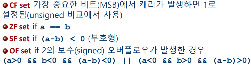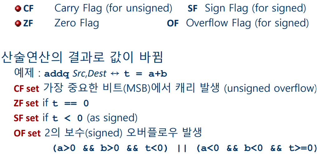 - Condition code를 setting, 즉 flag register 값을 바꾸는 방법은 다음과 같다.