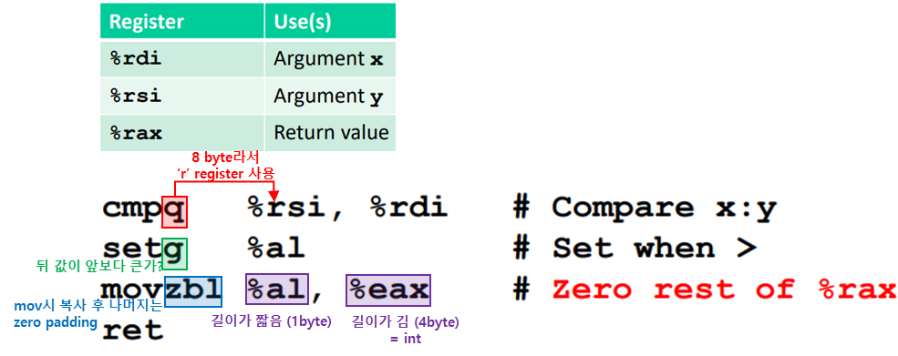 즉, %rsp를 예로 들면 최하위 1byte인 %spl을 이용해 0이나 1로 설정한다.