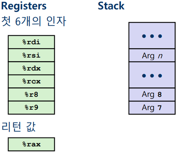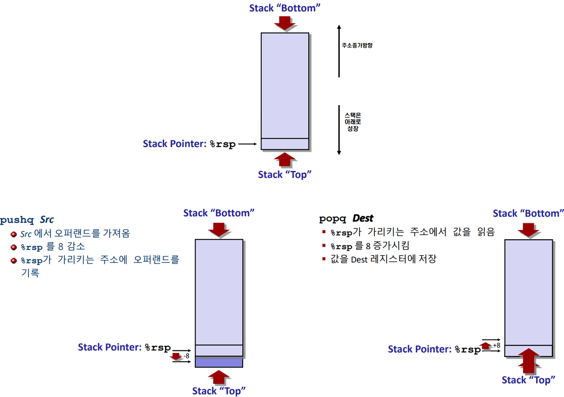 - 메모리 영역으로 register %rsp는 가장 작은 스택주소를 저장.