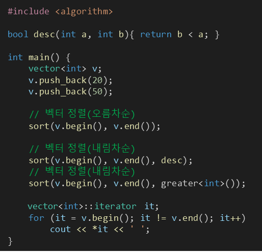 ※ 벡터의 오름차순과 내림차순 정렬 (feat. greater<int> 키워드)
