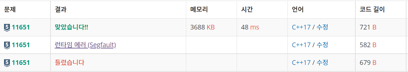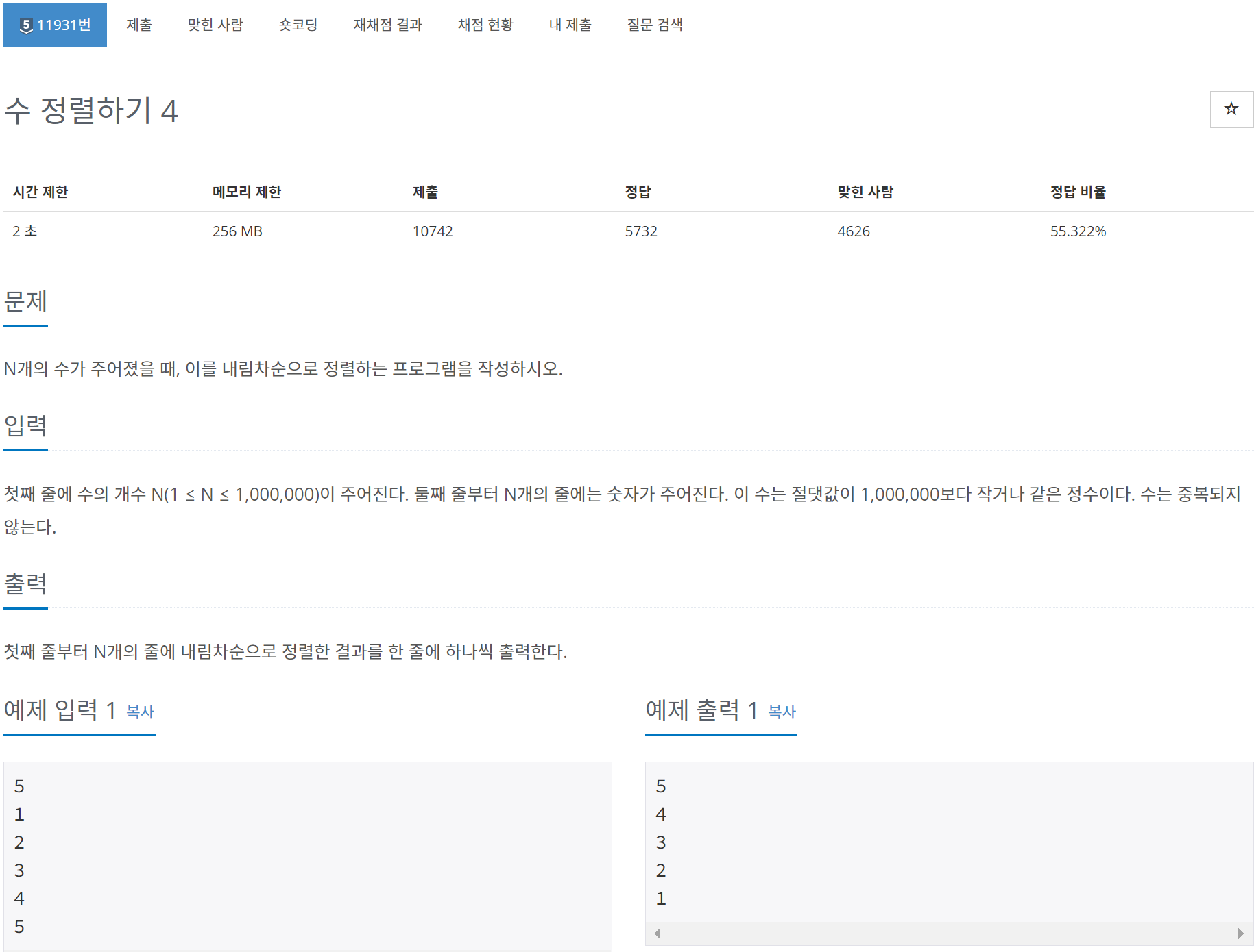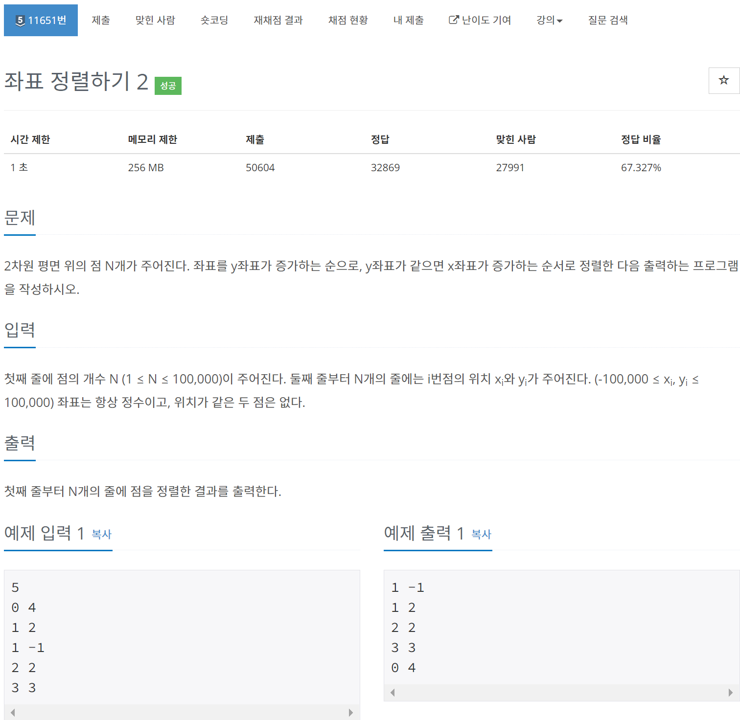 1. 배열과 배열의 포인터(주소값)로 sort 후 해결 (메모리 9708KB / 시간 636ms)