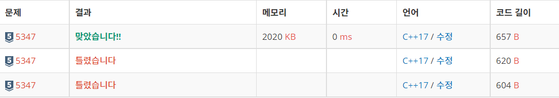 2. 배열을 벡터로만 바꿈 (메모리 9836KB / 시간 688ms)