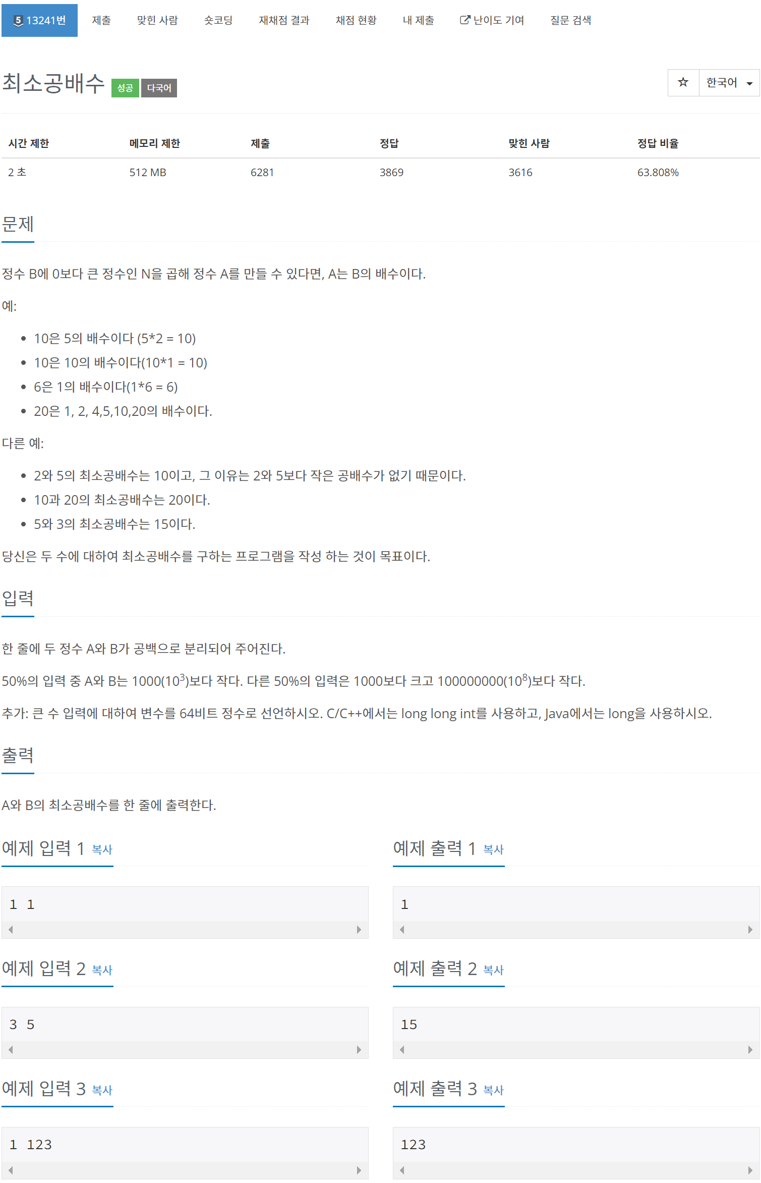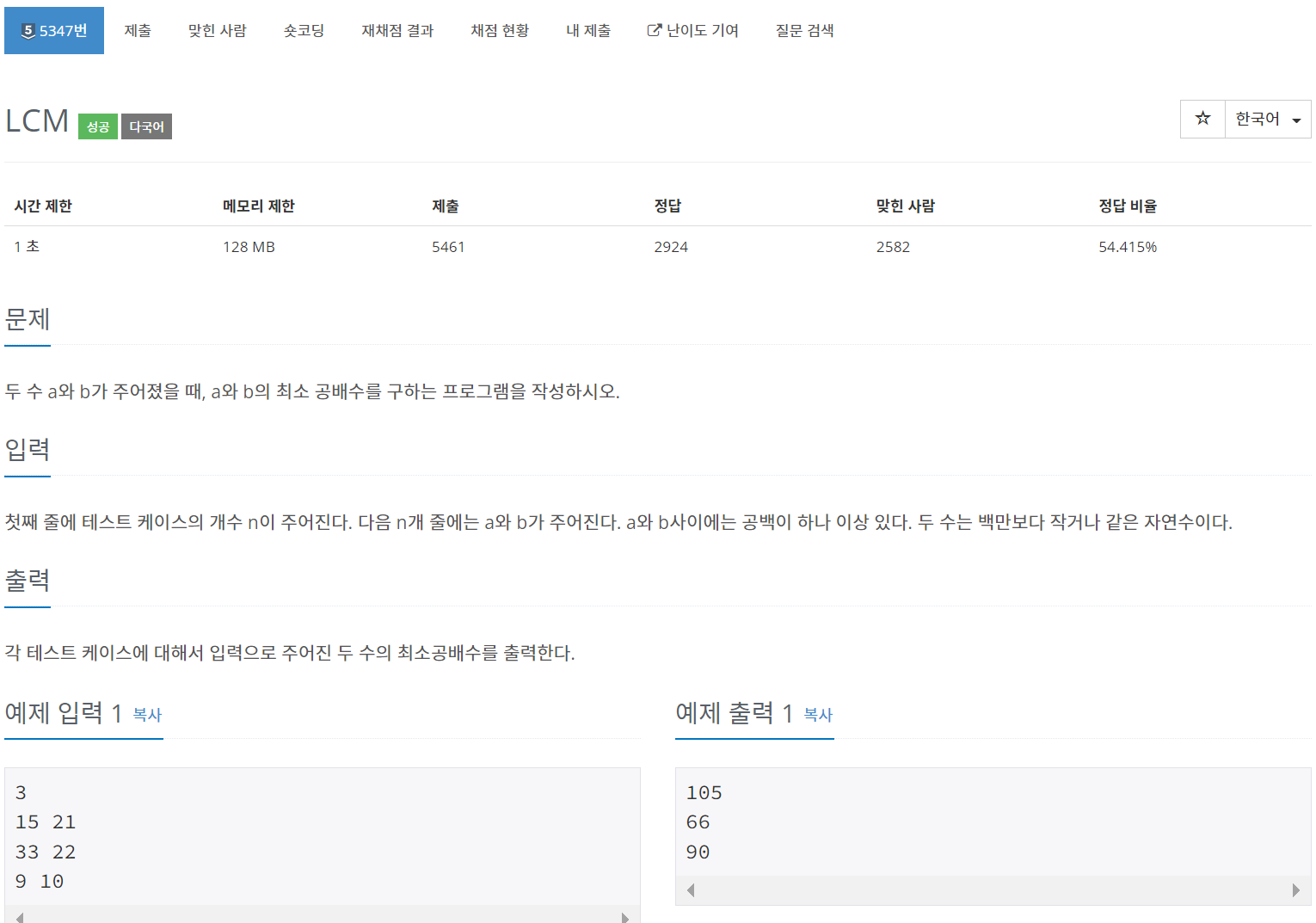 cout << lcm(v1.at(i), v2.at(i)) << '\n';