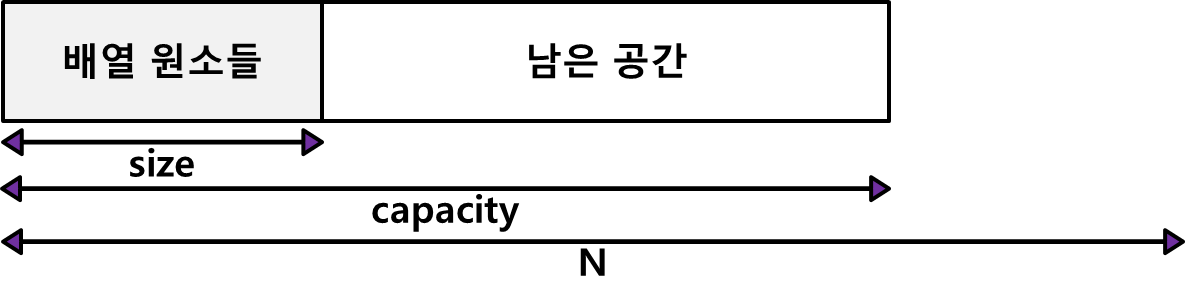size가 capacity를 넘으면 2배정도의 크기를 늘려 이동하는 방식으로 구현되어 있다.