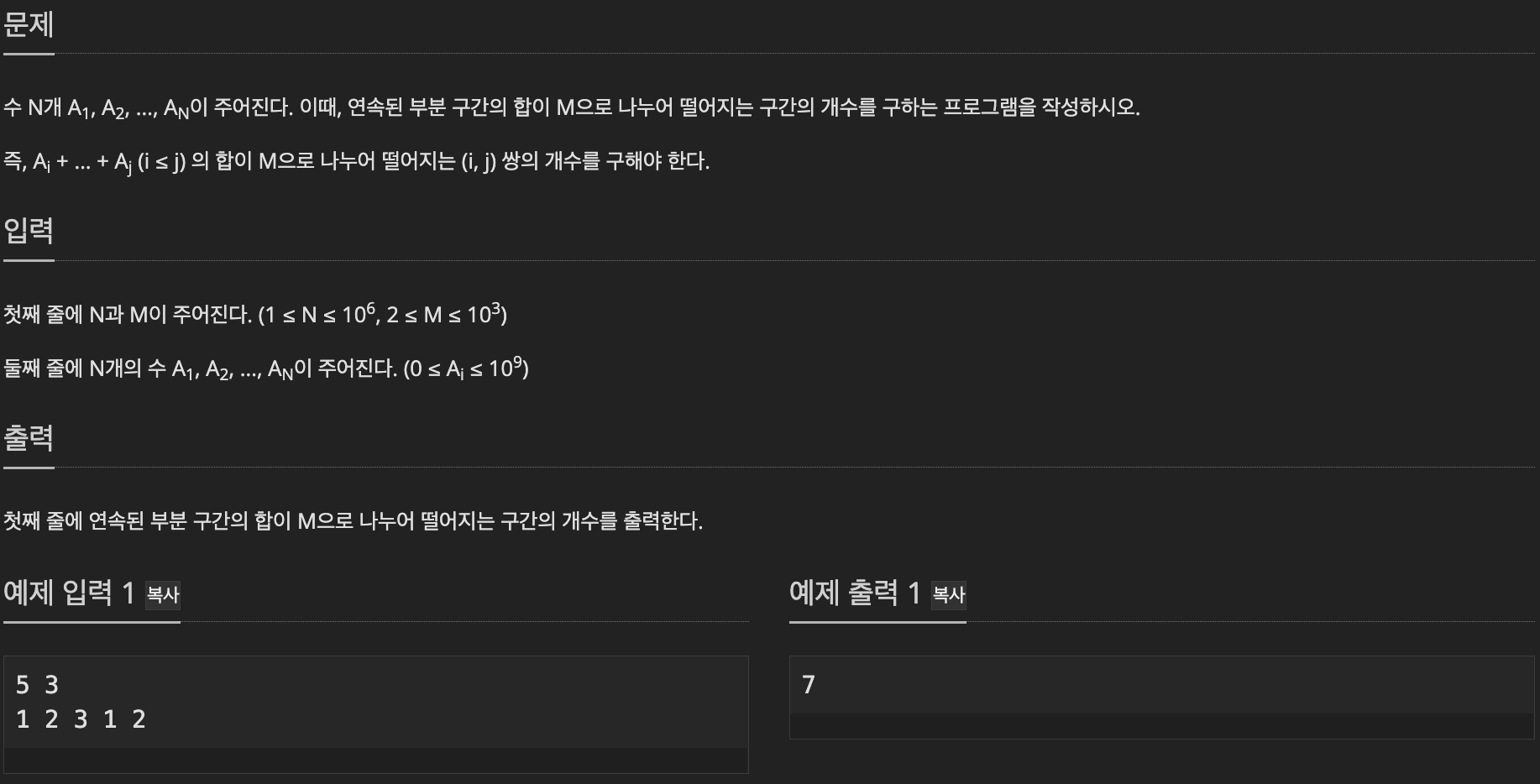 🧐 백준 10986(구간 합 구하기) Gold III