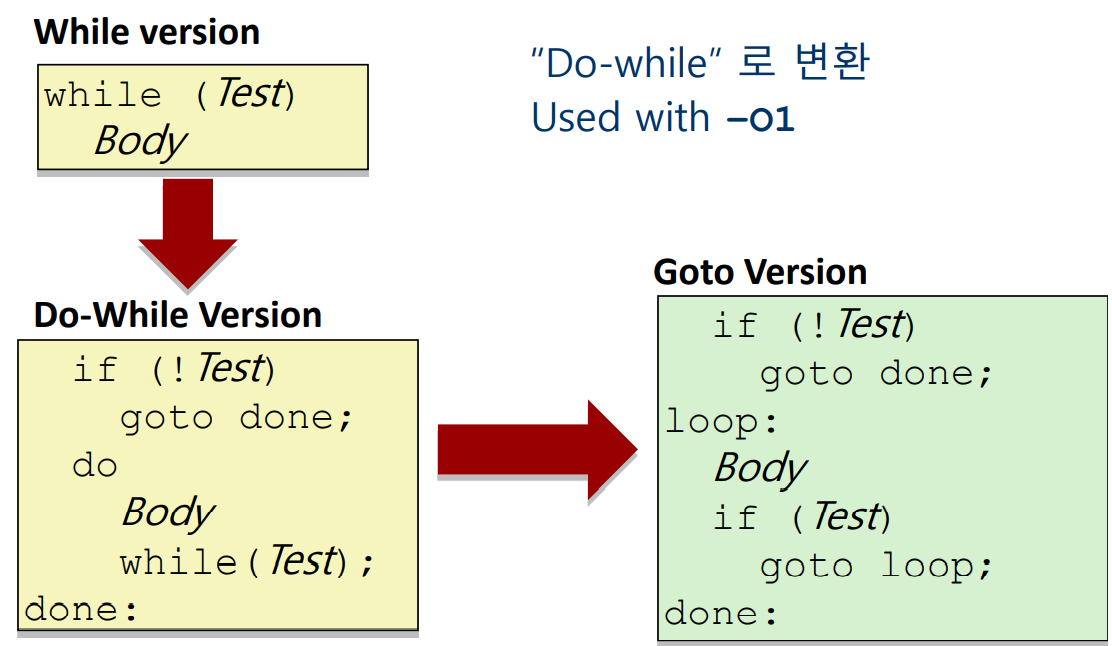 - 바꾸는 방법:조건문 => do-while => Go to => assembly