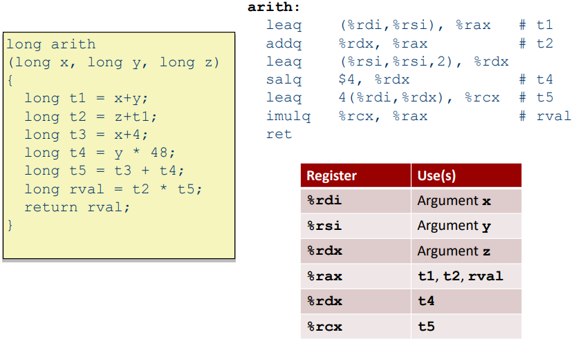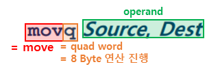 - ex) addq Src, Dest ↔ t = a + b