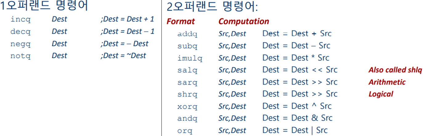 1. 산술연산 [간접 setting] (단, 이때 leaq명령어로는 값이 바뀌지는 않는다.)