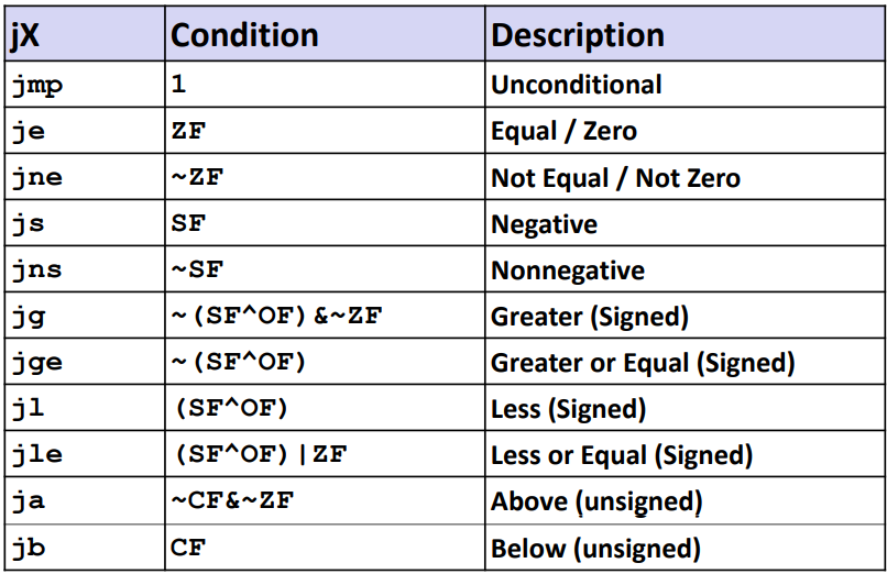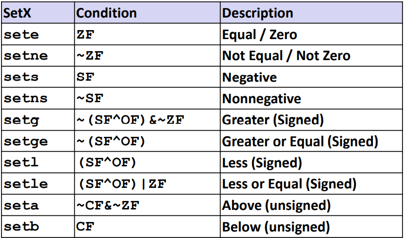- ByteReg의 하위 byte를 condition code (flag register)의 조합 X에 따라 0이나 1로 설정