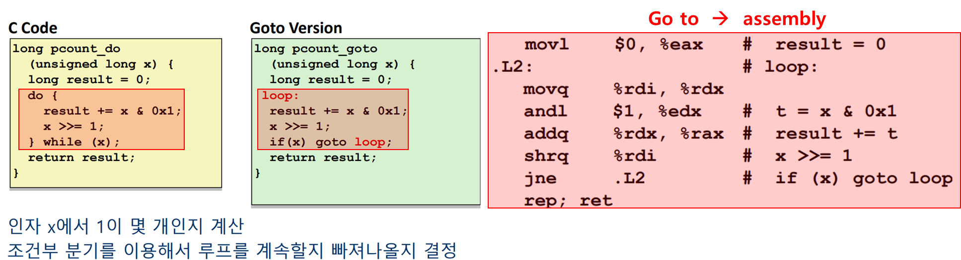 - 바꾸는 방법:조건문 => do-while => Go to => assembly