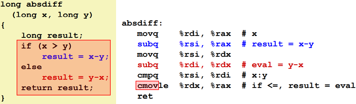- 조건부 이동명령은 제어의 이동이 필요가 없기 때문이다.