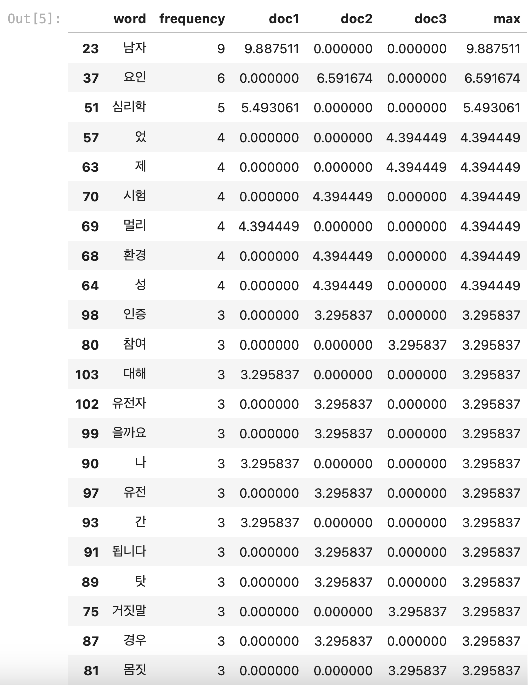 물론, 현재 딥러닝에서는 훨씬 더 정확한 방법을 통해 문서간 또는 문장간 유사도를 구할 수 있다.