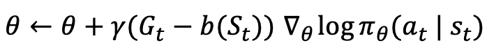 추가적으로 위의 수식에서 기댓값 수식을 Monte Carlo Sampling으로 대체하면 아래처럼 신경망 파라미터 θ를 update할 수 있다.