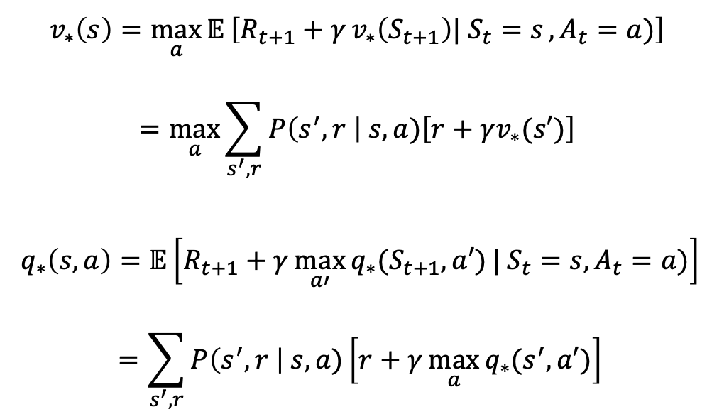 2.6 Bellman 방정식 가치함수와 행동가치함수의 정의에 따라 이상적인 가치함수와 이상적인 Q함수를 정의해보고자 한다면...? → Bellman Equation(벨만 방정식)을 다음과 같이 나타낼 수 있다. 좌) Back-Tracking / 우) Dynamic Programming. //. Back-Tracking의 경우, 모든 경우의 수를 전부 탐색해야 한다. DP: 문제를 겹치는 하위 문제(sub-problems)로 분해하고 최적 부분 구조(optimal substructure)를 따르는 방법으로 문제를 해결하는 기술로 큰 문제를 해결하는 것은 작은 하위 문제를 해결하는 것으로 나누어질 수 있습니다. 이 작은 하위 문제들을 해결한 후에는 그 결과를 조합하여 원래 문제를 해결합니다. 중요한 점은 동일한 하위 문제가 여러 번 계산되는 대신, 한 번 계산된 결과를 저장하고 재사용하여 계산 비용을 줄이는 것입니다. 이것이 DP의 핵심 아이디어이며, 겹치는 하위 문제가 있다면 DP를 효과적으로 활용할 수 있다.