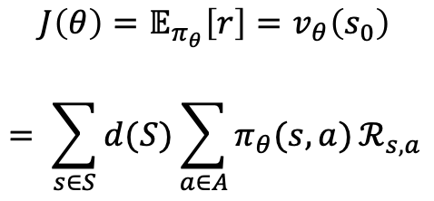 즉, 주어진 상황에 마땅한 보상이 있기에 우린 이를 바탕으로 현재 policy가 얼마나 훌륭한지 평가를 할 수 있다. 이를 아래 수식처럼 policy gradient수식으로 표현할 수 있다.