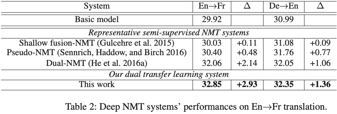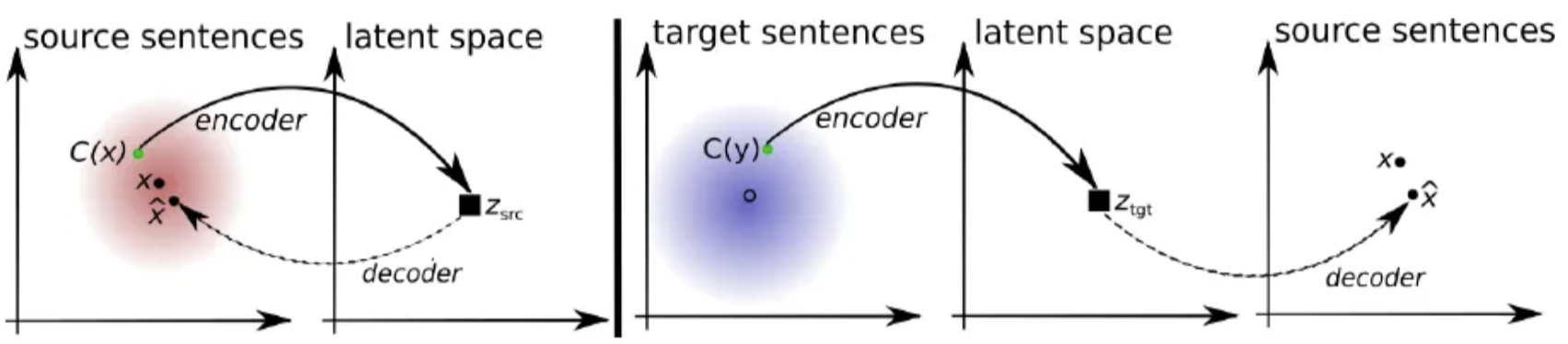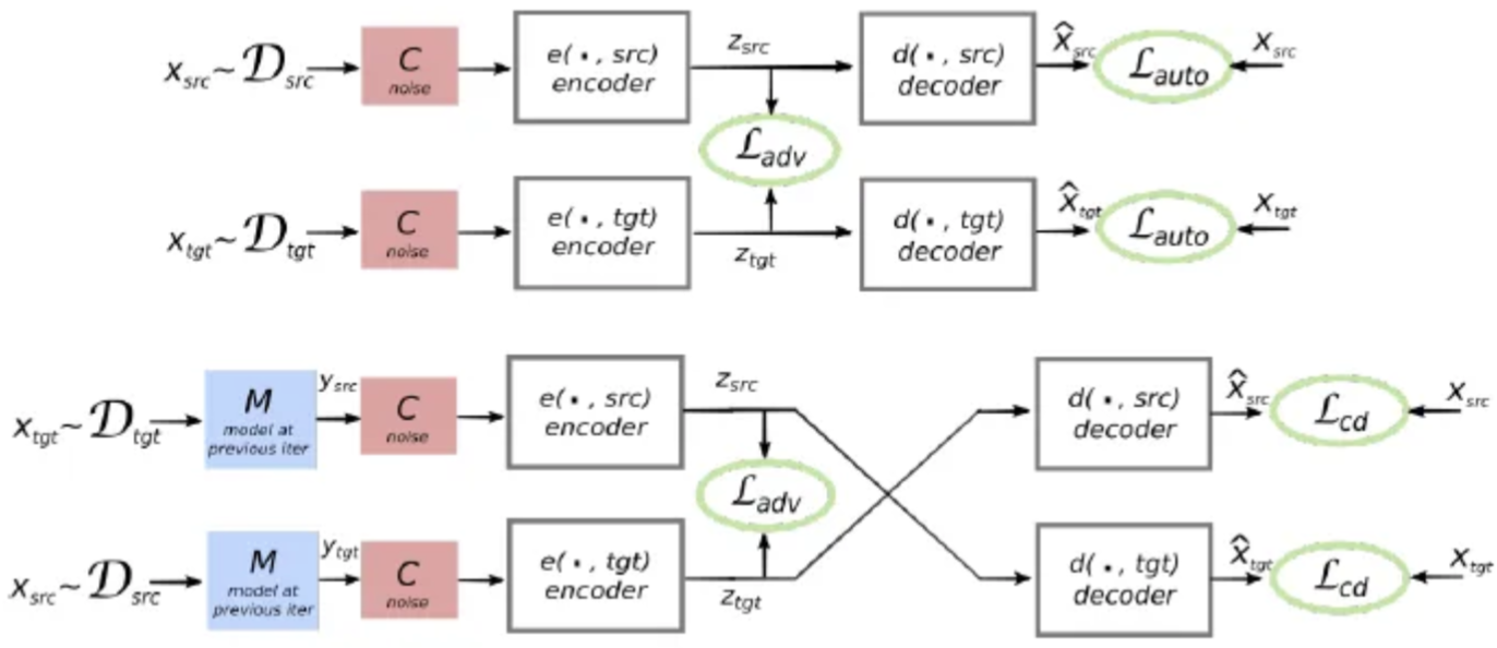 NLP의 특성상 CycleGAN처럼 직접적 미분값전 전달은 불가능하다. 하지만 기본적으로 아주 비슷한 개념을 활용하는데, 위의 논문은 "parallel corpus를 활용해 훈련된 기본성능의 NMT를 monolingual corpus를 이용해 그 성능을 극대화"하고자 했다.