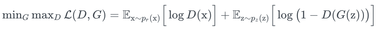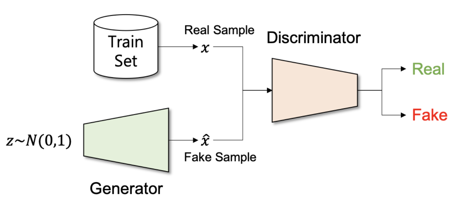 위의 그림처럼 GAN은 생성자(Generator)G와 판별자(Discriminator) D라는 2개의 모델을 각기다른 목표를 갖고 "동시에 훈련"시킨다. 두 모델이 균형을 이루면 min/max 게임을 펼치게 되면 최종적으로 G는 훌륭한 이미지를 생성할 수 있게 된다.