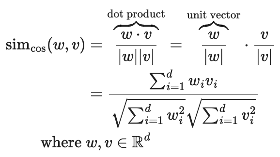 다만 더 큰 문제는 그 차원의 대부분 값이 0으로 채워지는 "희소벡터"로 무엇인가 학습하고자 할 때, cosine유사도의 경우 직교하여 유사도값을 0으로 만들 수 있다. 즉, 정확한 유사도를 구하기 어려워 질 수 있다.