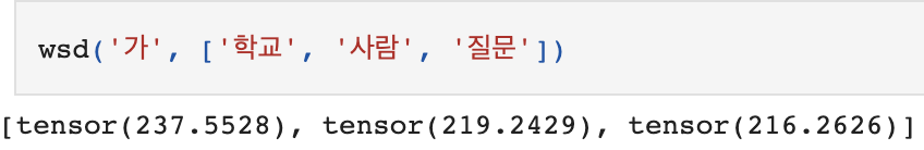 ∙ 주어진 문장 내 등장단어의 사전에서 의미별 설명 사이 유사도를 구한다.
