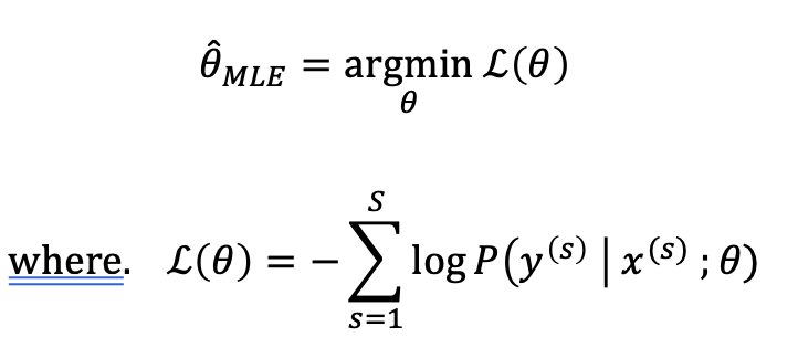 결과적으로 목적은 -logP(y)를 최소화 하는 것임을 알 수 있다. 이를 조금 전, 최소화하려는 손실함수에 이 수식을 대입해보면 아래와 같다.