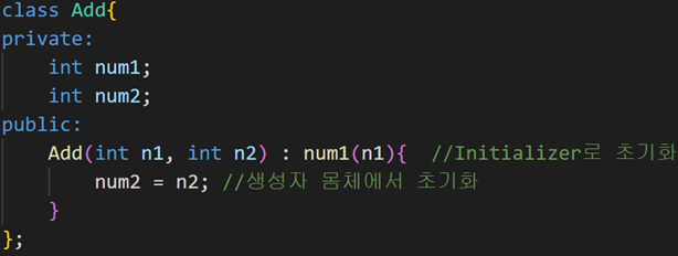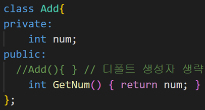 - 따라서 Add() {...}와 같은 생성자가 반드시 있어야 한다.