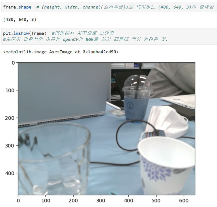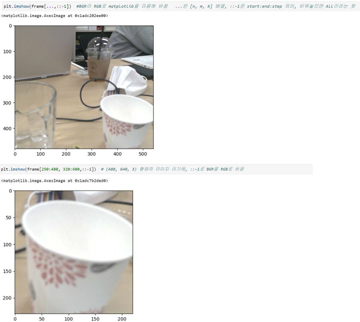 - frame을 slicing을 이용한 crop으로 자름 => [:, 100:]