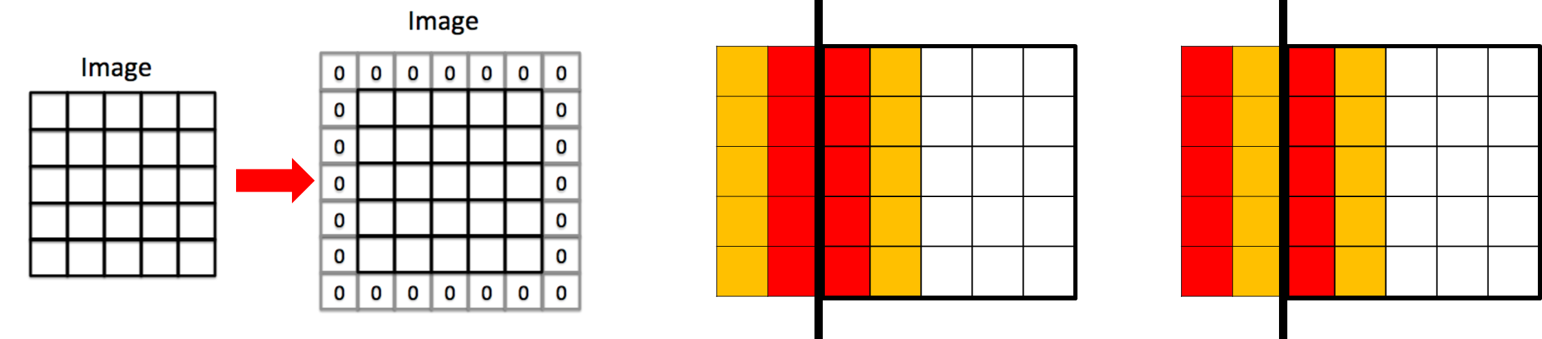 • zero-padding : 원본 image의 주위 값을 0으로 배치