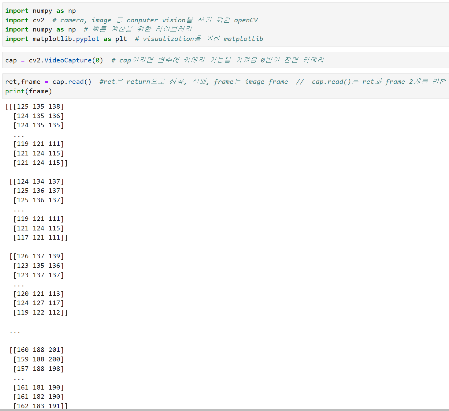 • image는 일종의 "array"이므로 이런 image를 배열단위를 자르는 방식을 통해 자를 수 있다.