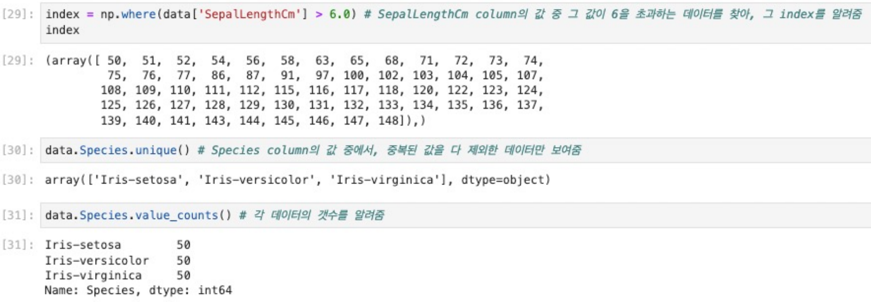 ▶ .where() – 조건에 맞는 데이터의 위치(index)를 알려줌