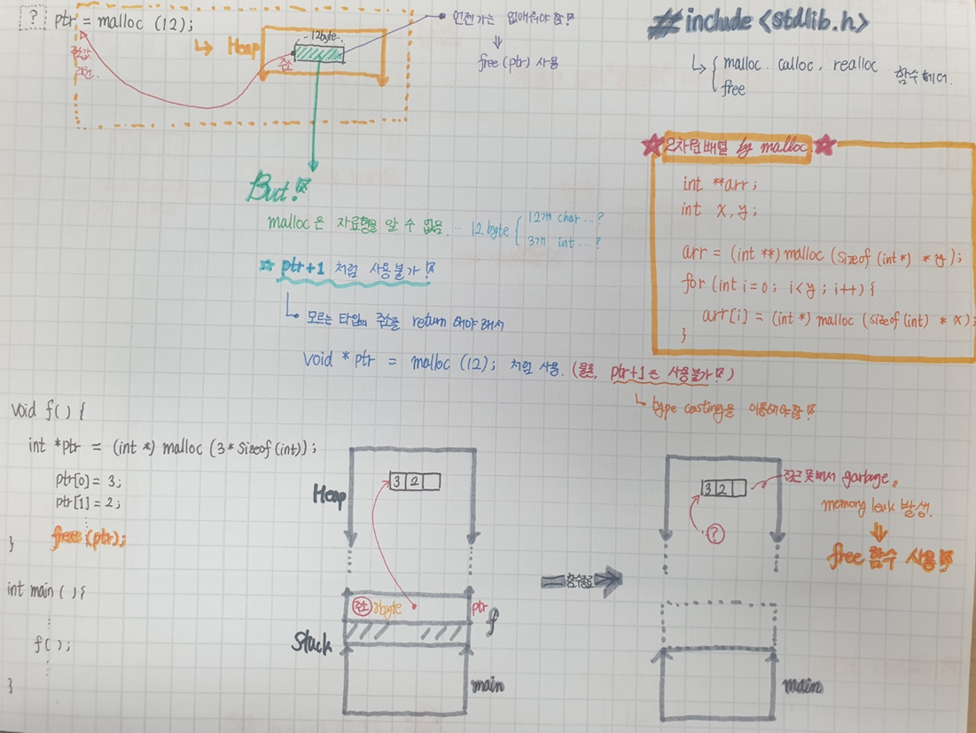 malloc: 인자가 1개이다. (memory allocation의 줄임말)
