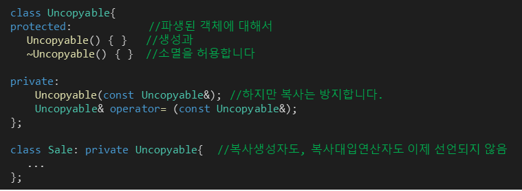 cf. 만약 private멤버로 char* name과 같은 배열관련 변수가 들어갔다면 delete []name로 memory leak을 막아야 한다.