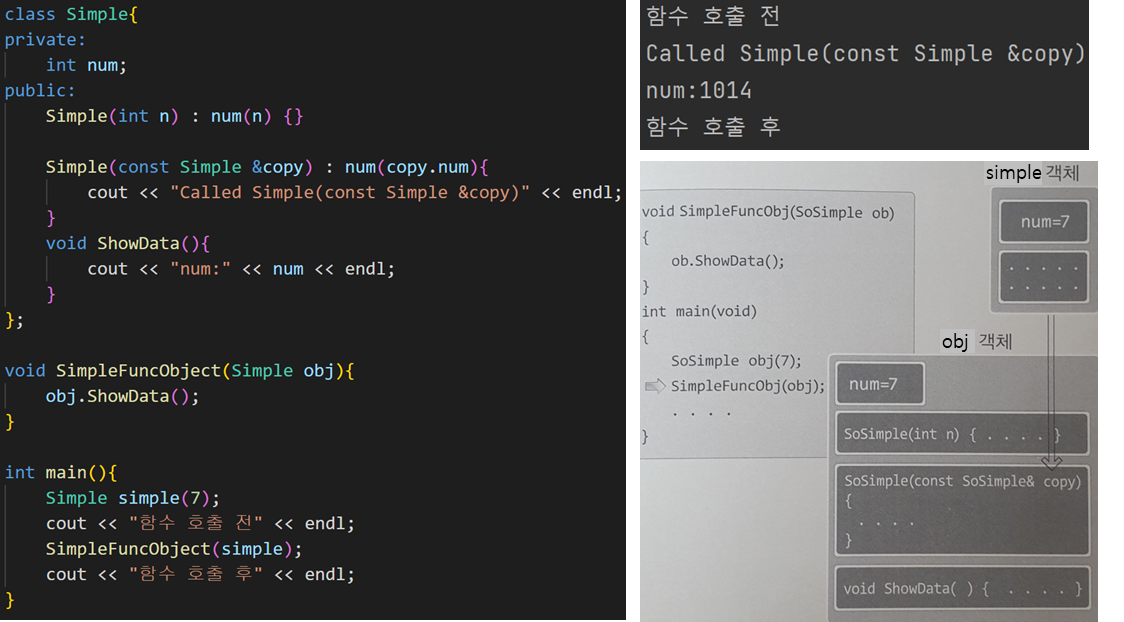 ※ 복사생성자 호출 시점:객체를 새로 생성하되 생성과 동시에 동일한 자료형의 객체로 초기화 할 때.