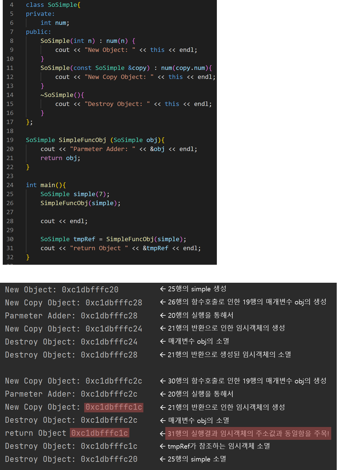 1. 임시객체는 다음행으로 넘어가면 바로 소멸된다.