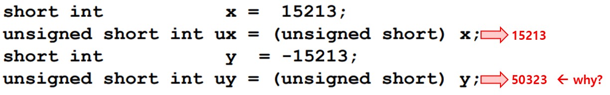 가장 중요한 점은 signed => unsigned로 바꾸면 음수가 엄청 큰 양수로 바뀔 수 있다는 점을 유의해야 한다!
